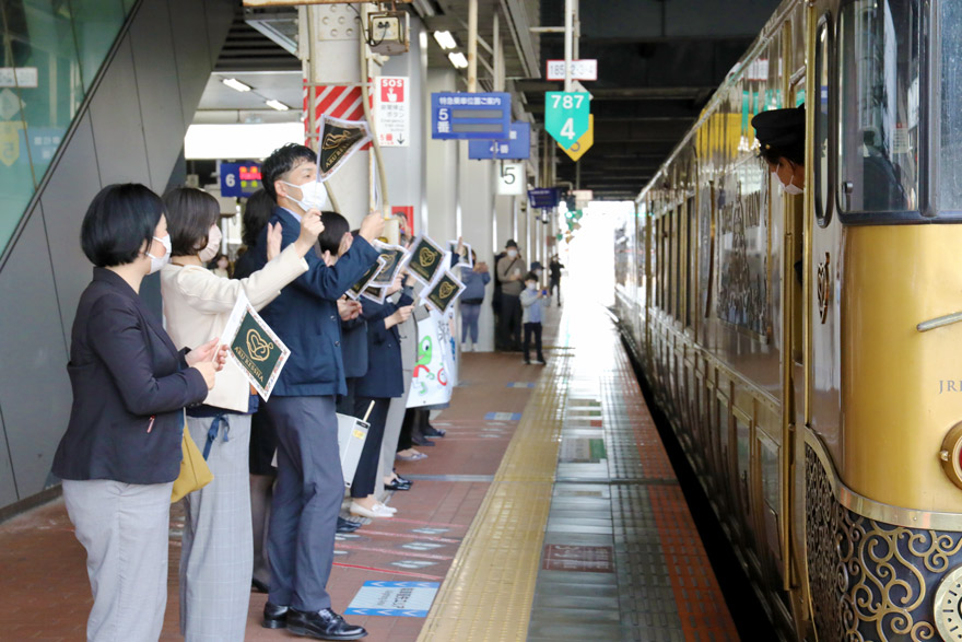 〔 或る列車(久大本線) 博多駅 温かいお見送りを受けて由布院に向けて発車する! R. 4. 11. 21 撮影 〕