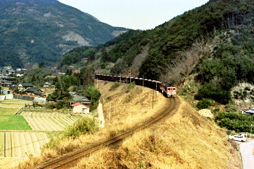 〔 土讃線 吾桑駅下手  石灰列車5795列車 DF50重連 ”DF50520+DF5056”    S.53.2.4 撮影 〕