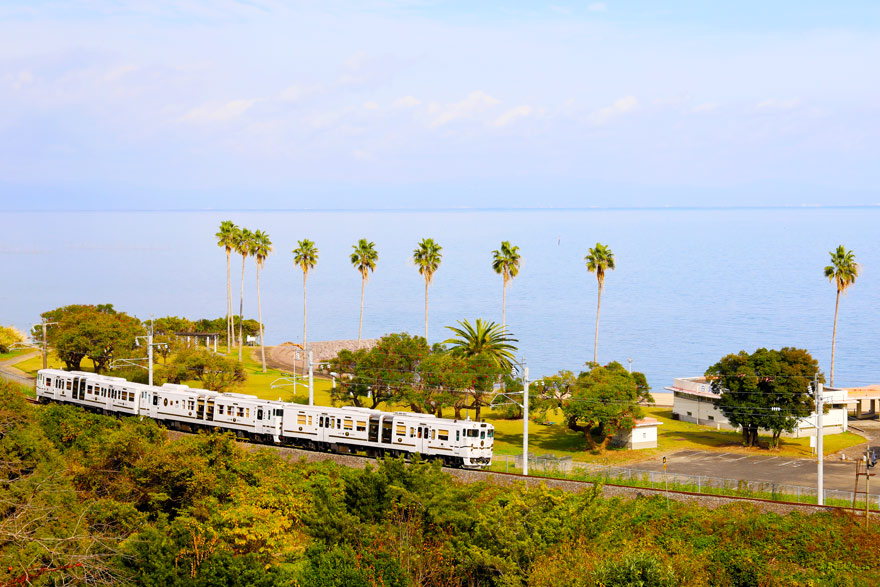 〔 ふたつ星4047 多良~肥前大浦 長崎本線で有名な撮影地で列車の背後は白浜海水浴場! R.4. 11. 24 撮影 〕