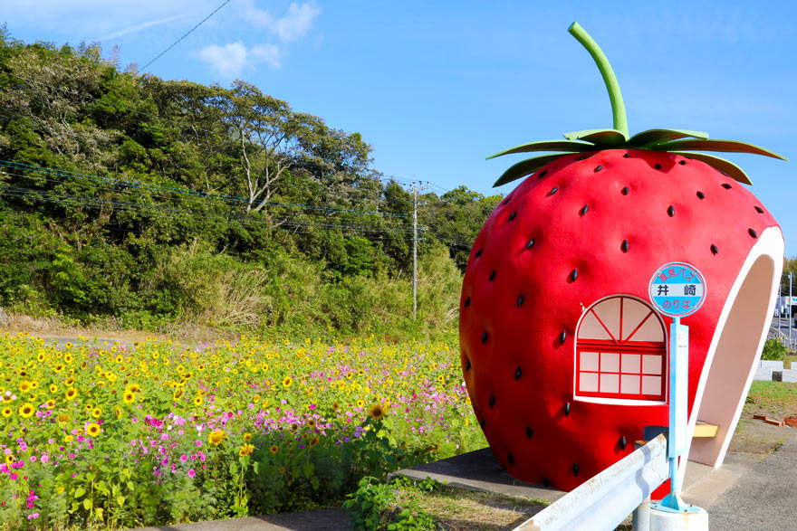 〔 ふたつ星4047 肥前大浦~小長井 イチゴ・メロンのバス停がある「井崎バス停」 R.4. 11. 24 撮影 〕