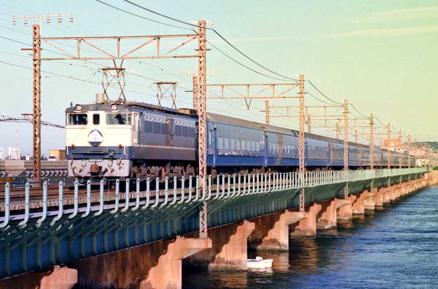 〔 東海道本線 弁天島~新居町 浜名湖橋梁を渡る! ”富士” S.55.6.3 撮影 〕