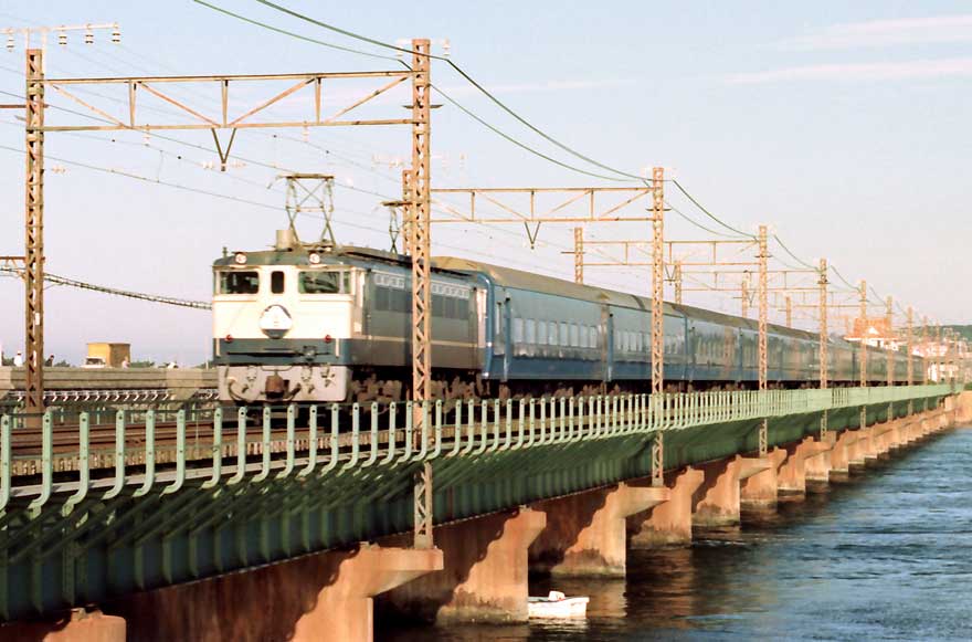 〔 東海道本線 弁天島~新居町  浜名湖橋梁を渡る! ”富士”    S.55.6.3 撮影 〕