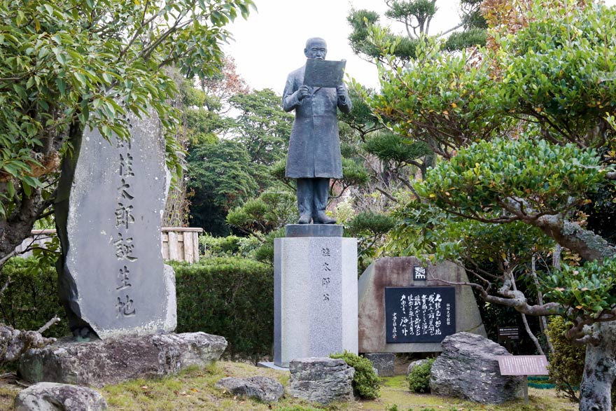 〔 桂太郎旧宅の流水式池泉庭園に、 内閣総理大臣を3度つとめた桂太郎の公銅像が建っています。〕