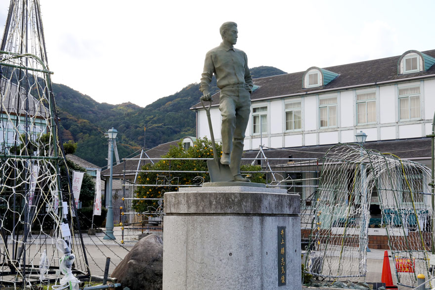 〔 萩 駅 萩駅舎前に “ 鉄道の父 ” と称される井上勝の銅像「井上勝 志気像」が、 平成28年10月に建立された! 〕