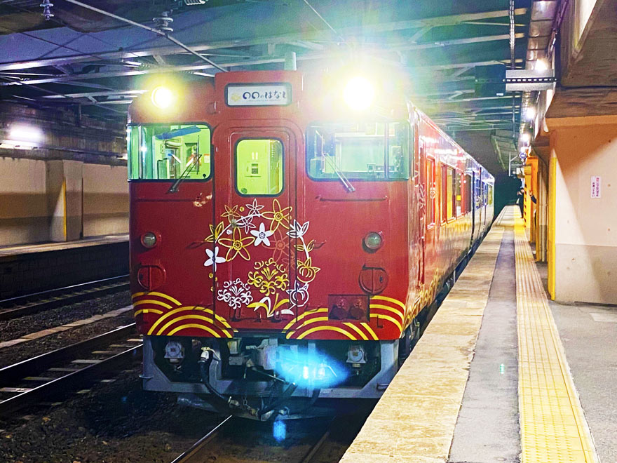 〔 新下関 駅 観光列車「〇〇のはなし」 山陽新幹線の高架橋の下、終点の新下関駅に到着! R.7. 11. 24 撮影 〕