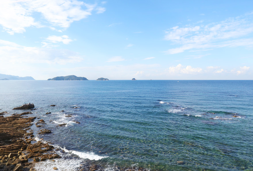 〔 観光列車「〇〇のはなし」 車窓からは「響灘」に浮かぶ小さな島々を望むビュースポット! R.7. 11. 24 撮影 〕