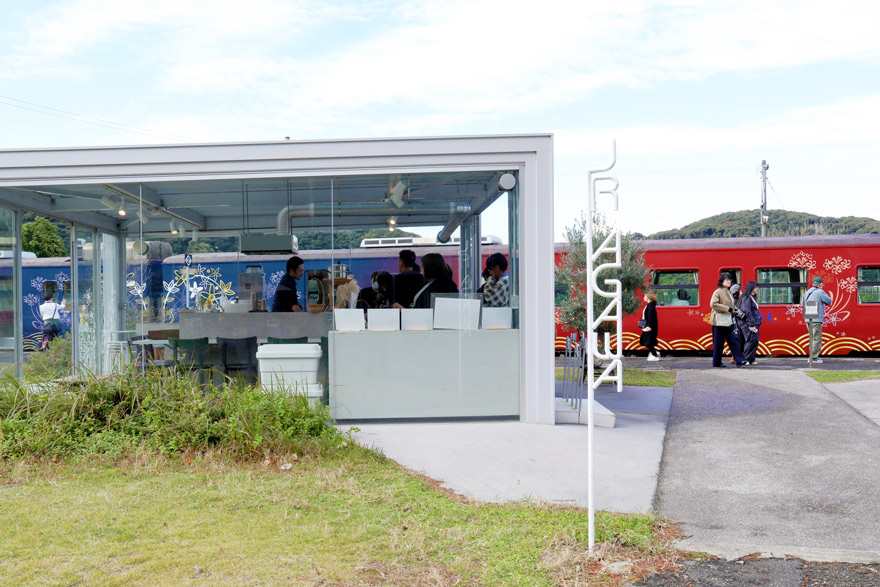 〔「 〇〇のはなし」 阿川駅 角島大橋にほど近い無人駅で古き良き駅の施設横に現れる建物が “Agawa” です。〕