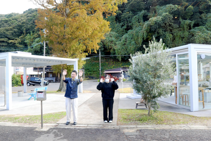 〔 阿川駅 観光列車「○○のはなし」東萩行き ” Agawa ” スタッフがお手振りで出発をお見送り! 〕