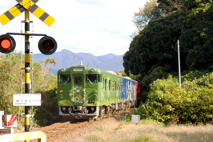 〔 山陰本線 三見~玉江 倉江第2踏切を通過する! 観光列車「〇〇のはなし」 東萩行き R.7. 11. 23 撮影 〕
