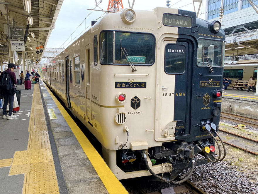 〔「指宿のたまて箱」 黒と白のハーフカラーは “ 黒髪だった浦島太郎がたまて箱を開けたら白髪に ” というイメージ!〕