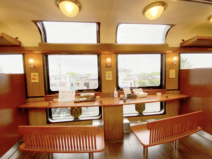 〔「指宿のたまて箱」(予備車) 車両中央部にある展望スペースの上は天窓仕様で大きく広々とした印象を与えます! 〕