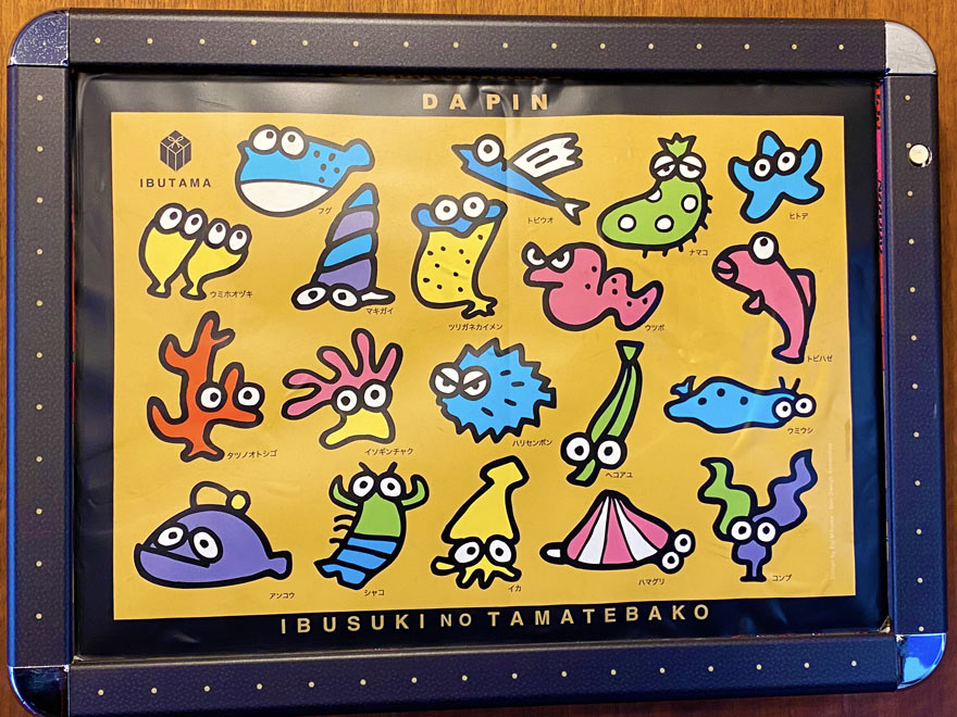 〔「指宿のたまて箱」(予備車)タイやヒラメの舞を連想させる錦江湾の魚たちのイラストを展示! R.5. 4. 5撮影 〕