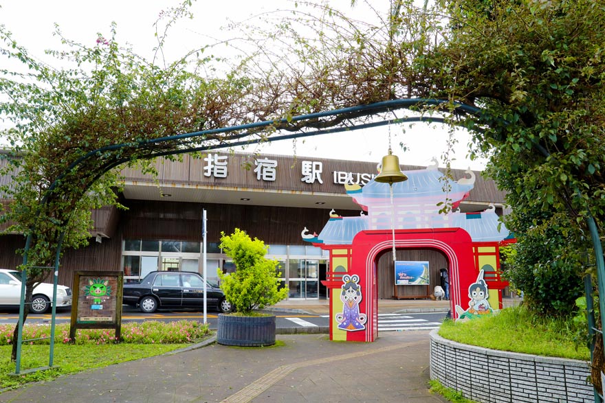 〔 指宿枕崎線 指宿駅 駅前には、指宿市に竜宮伝説があることから、竜宮城をかたどったモニュメントが設置!〕