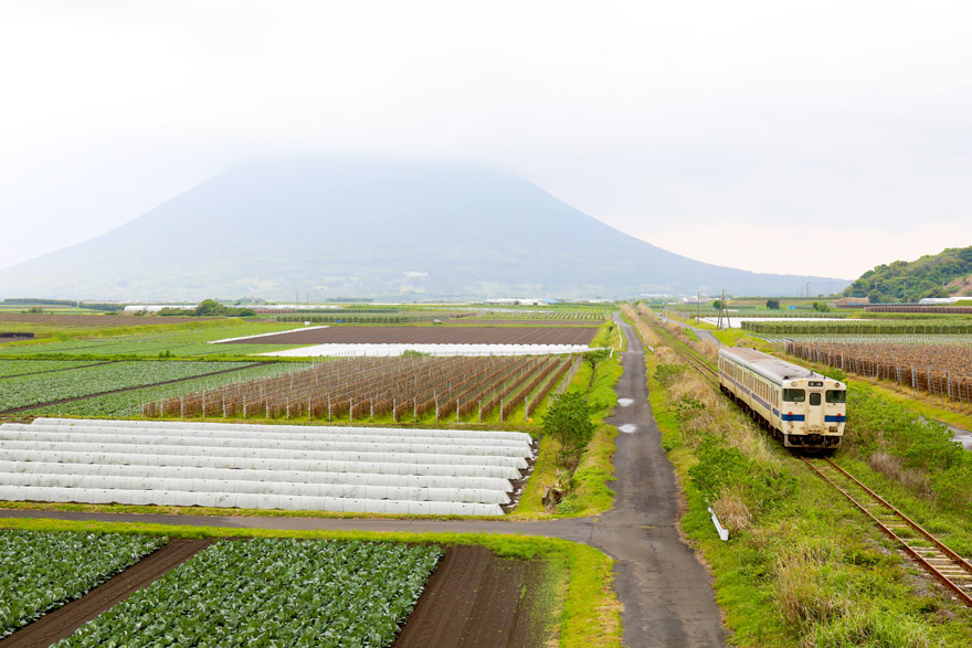 〔 指宿枕崎線 西大山~大山 ” 開聞岳 ” を背景に田園地帯を往く! キハ47形 枕崎行き R.5. 4. 7 撮影 〕