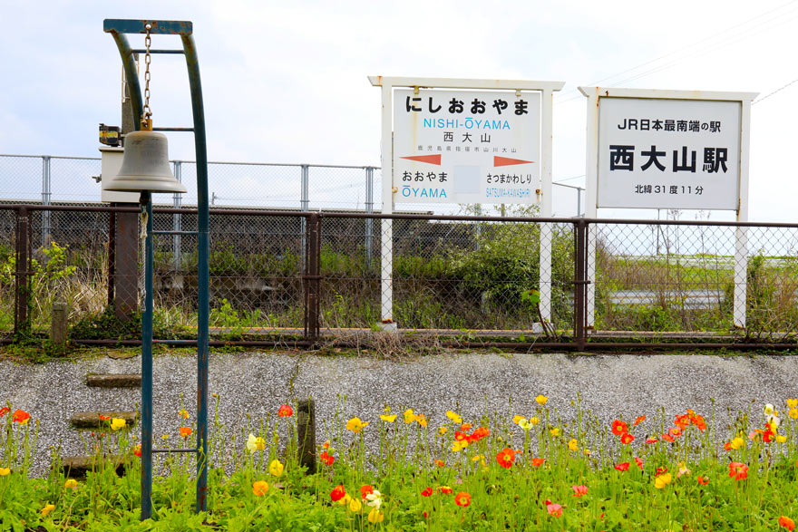 〔 指宿枕崎線 西大山駅 薩摩富士と呼ばれる開聞岳も見え旅行客が大勢訪れる観光スポット! R.5. 4. 6 撮影 〕