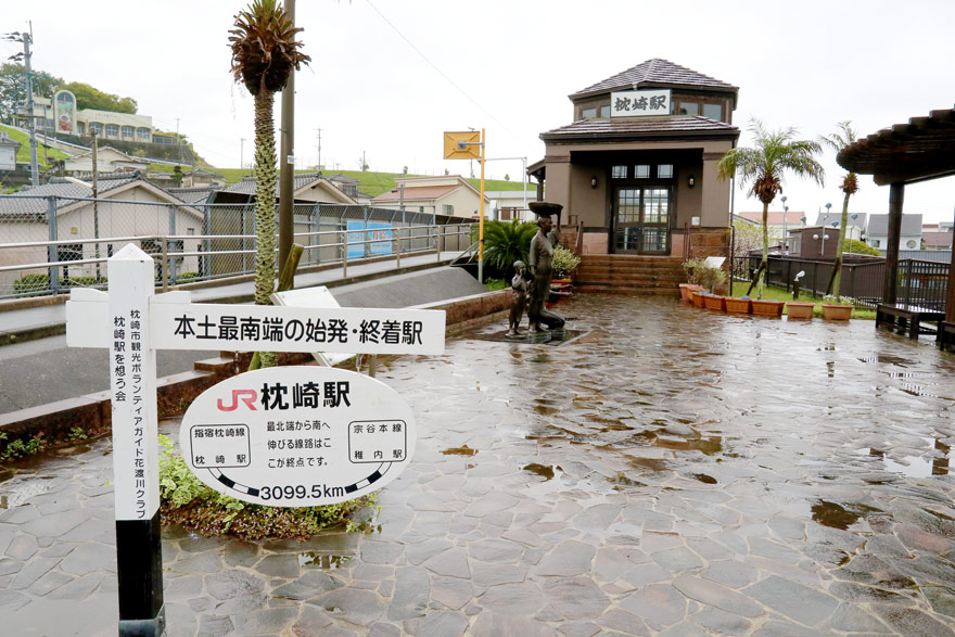 〔 指宿枕崎線 枕崎駅 駅舎前に「本土最南端の始発・終着駅」の碑が設置されている。 R.5. 4. 6 撮影 〕
