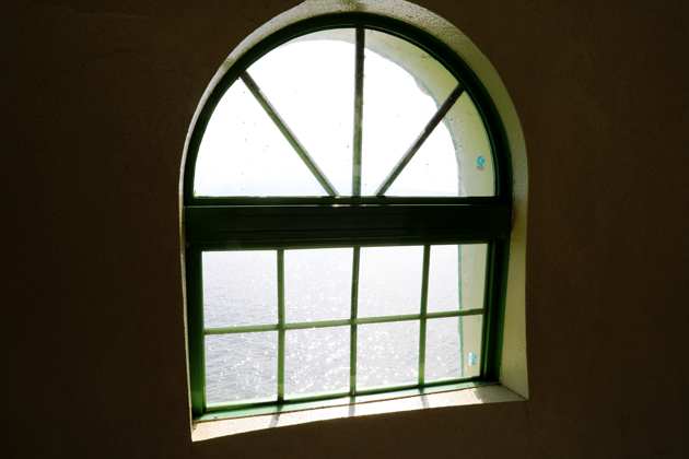 窓を向いていて1人旅