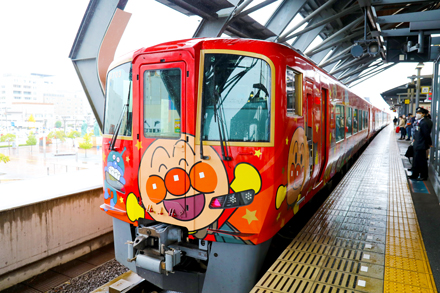 隣接してアンパンマンの石像と後免駅の歌である「ごめん駅