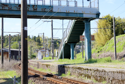 島式ホーム1面2線を有する駅で、駅舎とホーム