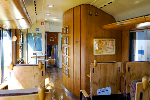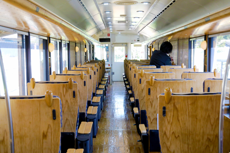 木の香りに包まれた明るい車内は