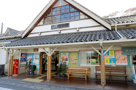 木造平屋建瓦ぶきの駅舎中央