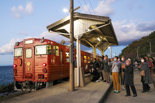 「伊予灘ものがたり」の発車を心惜しみながら見送る! つめかけた下灘駅ファン!!