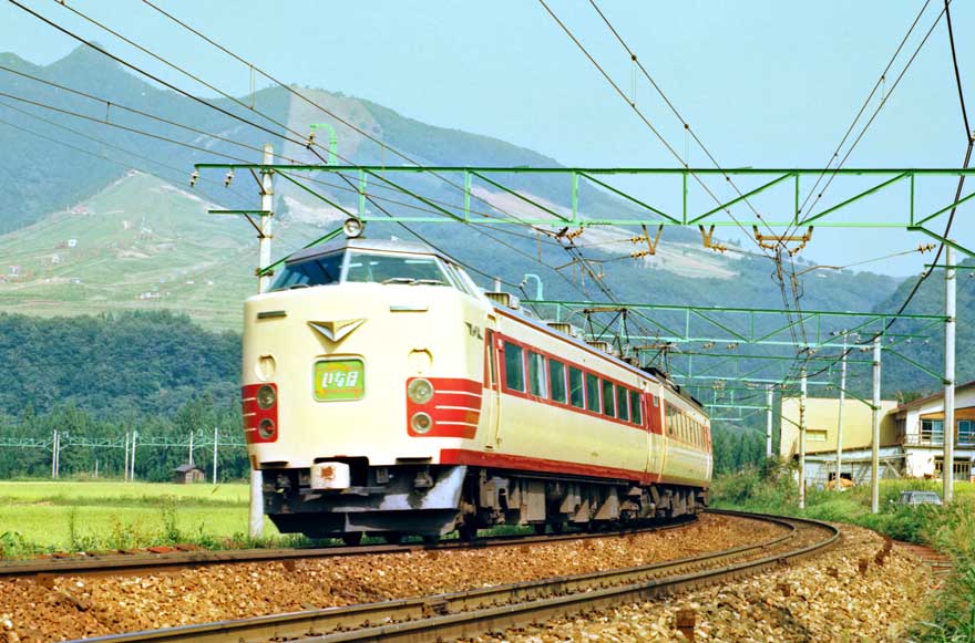 〔 上越線 岩原スキー場下 ”183系 いなほ1号” S55.9.18 撮影 〕