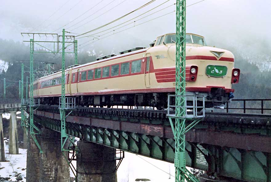 〔 上越線 土樽~越後中里 魚野川鉄橋 181系 ”とき”10号 S54.2.23 撮影 〕