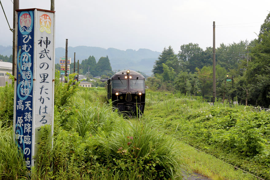 〔 ななつ星in九州(霧島コース) ” 神武の里 ” 高原駅に到着! R. 5. 8. 24 撮影 〕