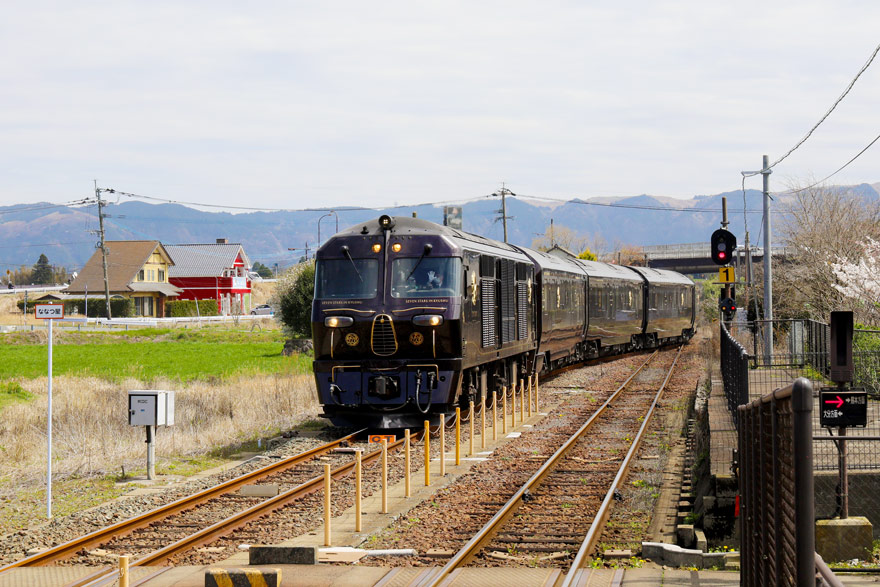 〔 ななつ星in九州 霧島コース(3泊4日) 運転士が手を振って阿蘇駅に到着! R. 5. 3. 31 撮影 〕