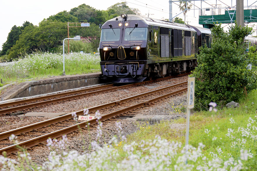 〔 ななつ星in九州(おれんじ鉄道線)牛ノ浜駅 約1時間停車して鹿児島中央駅へ向かう!    R. 5. 4. 1 撮影 〕