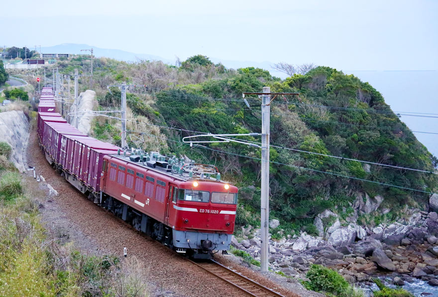〔(おれんじ鉄道線)薩摩大川~西方 博多方面に向かう! ED76牽引 コンテナ車10両編成 R. 5. 4. 1 撮影 〕