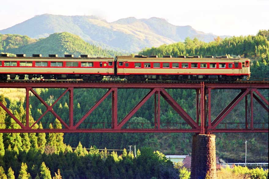 〔 日豊本線 田野~青井岳 青井岳の鉄橋を渡る気動車 S.49.3.15 撮影 〕