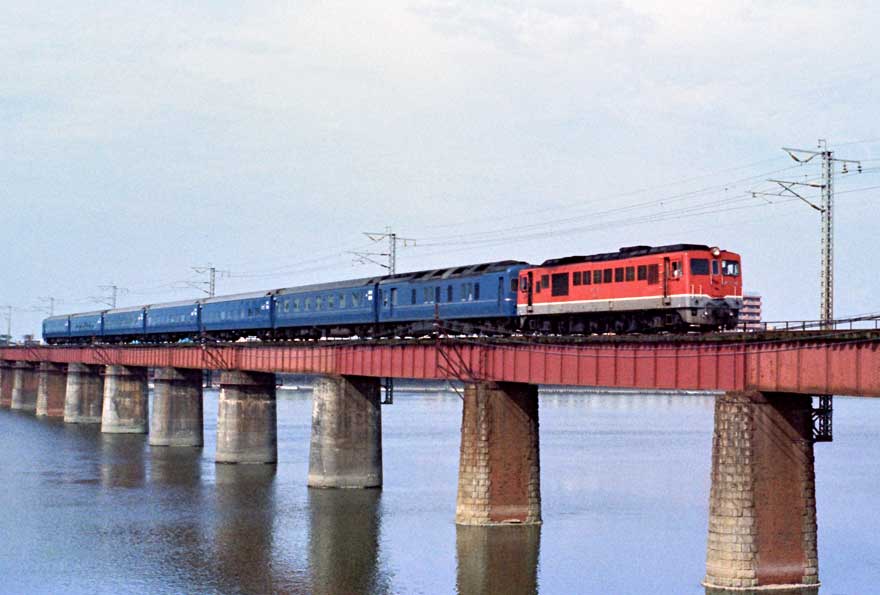 〔 日豊本線 大淀川を渡る DF50牽引 特急列車 S.49.3.15 撮影 〕