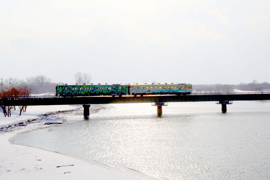 〔 釧網本線 止別~知床斜里 斜里川鉄橋を渡る! 「流氷物語号」 網走 行き R. 7. 2. 13 撮影 〕