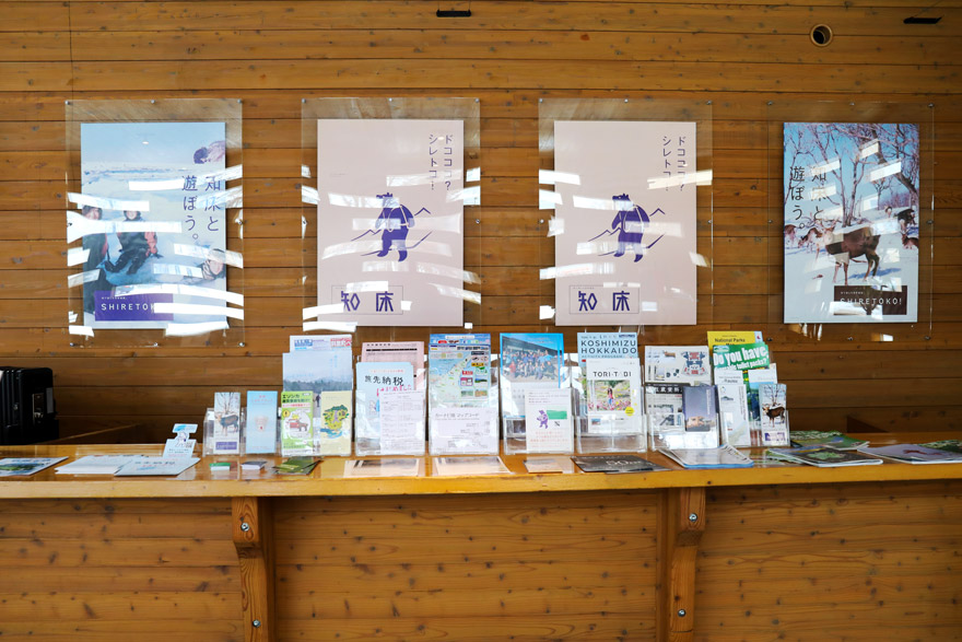 〔 釧網本線 知床斜里駅 増築した観光センターの観光案内所には知床の案内パンフレットの数々! R.7. 2. 13撮影 〕