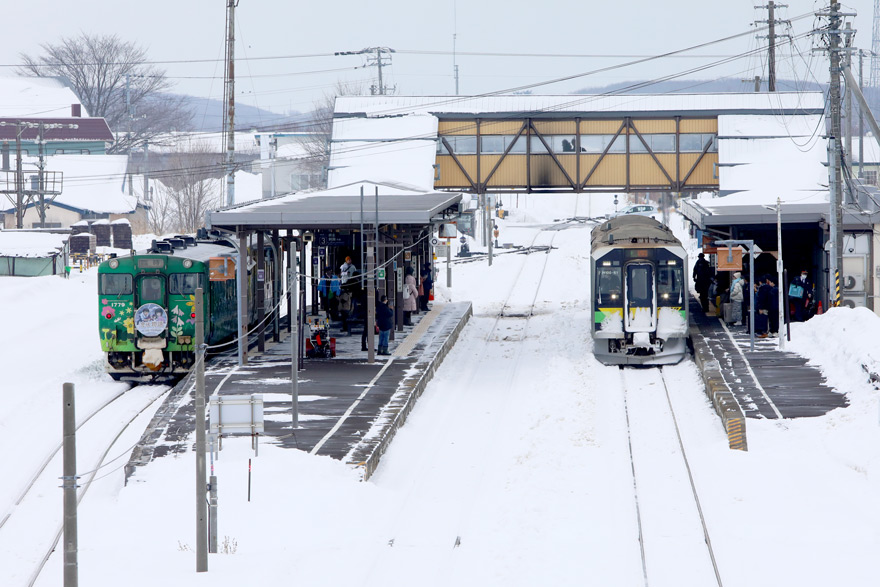 〔 釧網本線 知床斜里駅 「しれとこ摩周号」釧路行きが 1番線 に到着! (釧路寄り跨線橋で撮影) 〕
