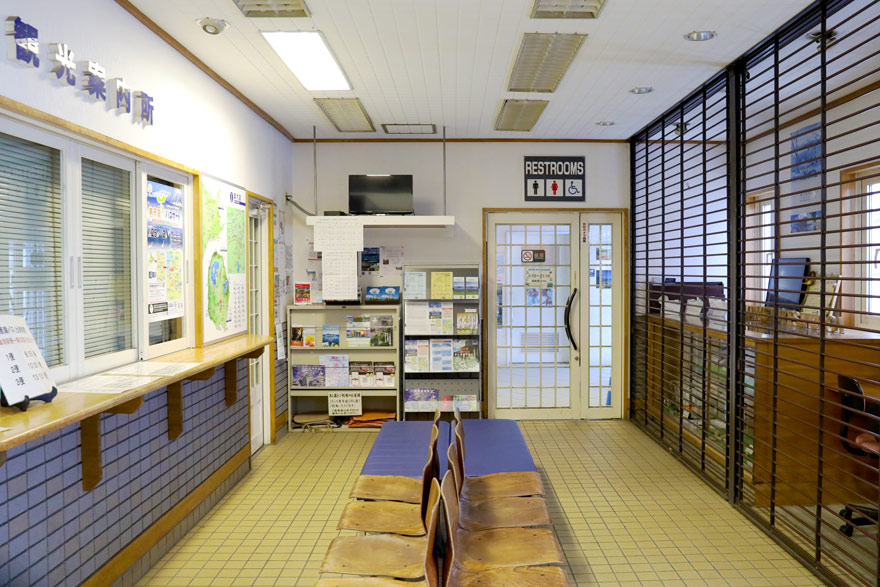 〔 釧網本線 摩周駅 駅舎内には、地域の商店がキヨスクの代わりとして出店し、観光案内所も設けられている。〕