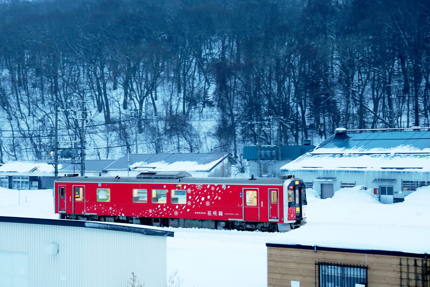 〔 網走駅 早朝、列車整備庫から出庫準備をする! H100‐83 地球探索鉄道 花咲線 (ホテルサンアバシリから撮影)〕