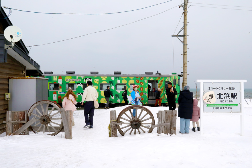 〔 流氷物語号 北浜駅 オホーツク海に一番近い駅、また 映画のロケ地として有名な駅! R. 7. 2. 13 撮影 〕