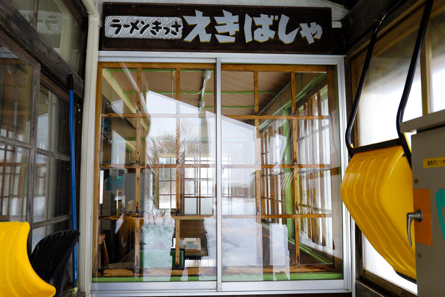〔 釧網本線 止別駅 窓から「ラーメンきっさ・えきばしゃ」の様子が伺えます! R. 7. 2. 13 撮影 〕