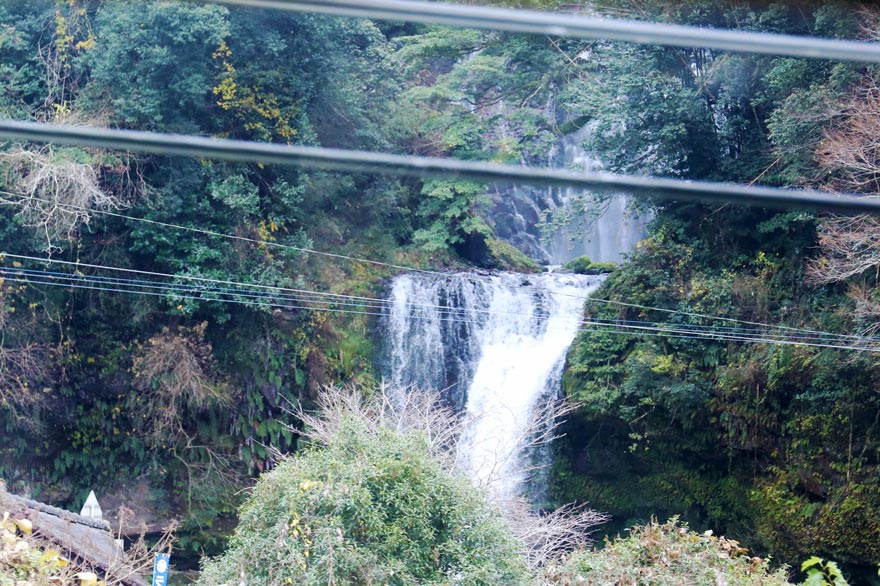 〔「ゆふいんの森 Ⅲ世」 ” 慈恩の滝 ” 上段、下段と合わせて約30mの落差がある二段滝! (車窓から)〕