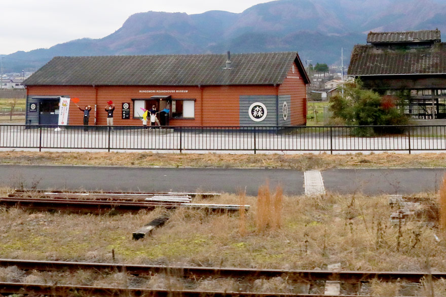 〔「ゆふいんの森 Ⅲ世」 豊後森機関庫ミュージアムの前ではお手振り歓迎! (車窓から) R.4. 12. 3 撮影 〕