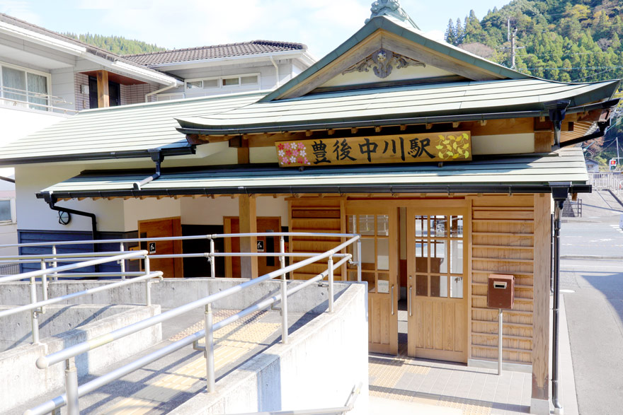 〔久大本線 豊後中川駅 単式ホーム1面1線の無人駅。2015年に木造の新たな駅舎待合室となった。 R.4. 11.20撮影〕