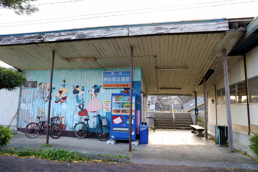 〔 平成筑豊鉄道 糒(ほしい)駅 駅舎(右側)には「筑豊ボクシングジム」 R. 4. 11. 30 撮影 〕