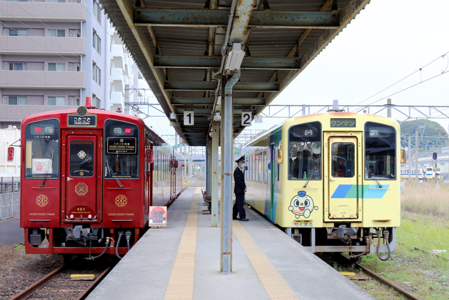 〔 平成筑豊鉄道 1番線 401号車・402号車 「ことこと列車」 2番線 406号車「なのはな号」 R. 4. 11. 19 撮影 〕