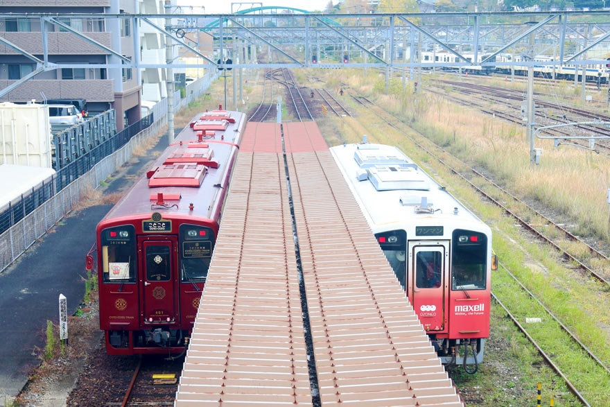 〔 平成筑豊鉄道 直方駅 401号車・402号車 「ことこと列車」・407号車「マクセル号」 R. 4. 11. 19 撮影 〕
