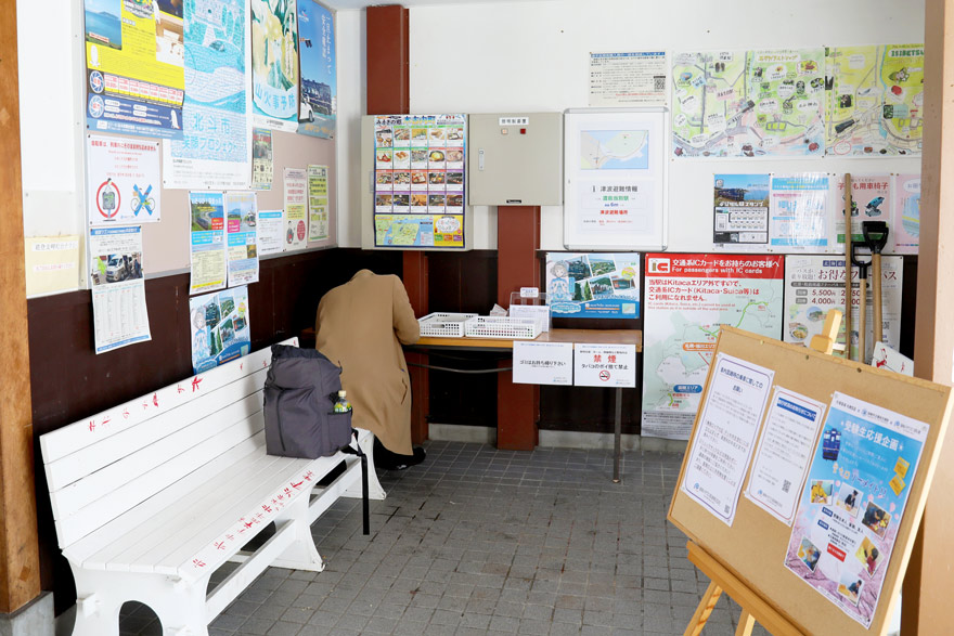 〔 道南いさりび鉄道 渡島当別駅 吹き抜けの塔屋の下を待合室やホームへの通路となっている! R. 7. 2. 9 撮影 〕