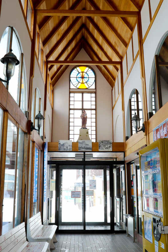 〔 道南いさりび鉄道 渡島当別駅 駅舎内には陶器製の聖像が飾られている! 〕