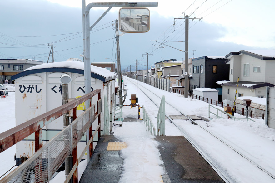 〔 道南いさりび鉄道 東久根別駅 駅の南北を結ぶ構内踏切! 久根別方面を望む R. 7. 2. 9 撮影 〕